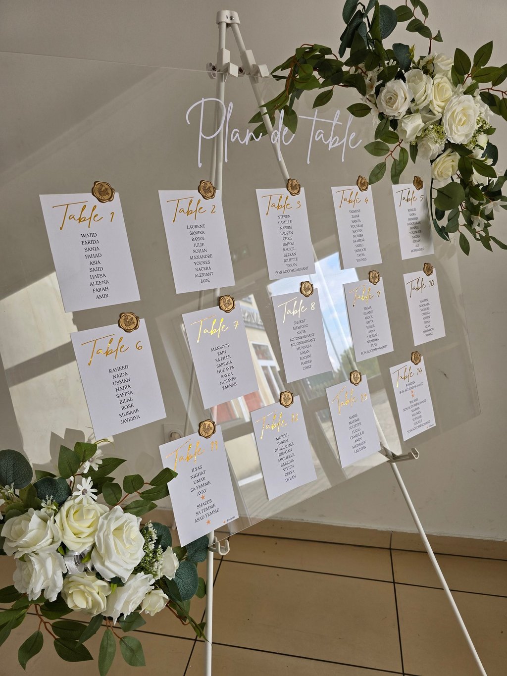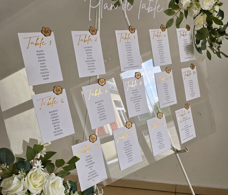 Du plan de table au panneau de bienvenue, en passant par des menus et marques place, tout est personnalisé et personnalisable!