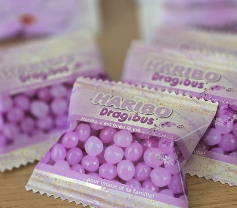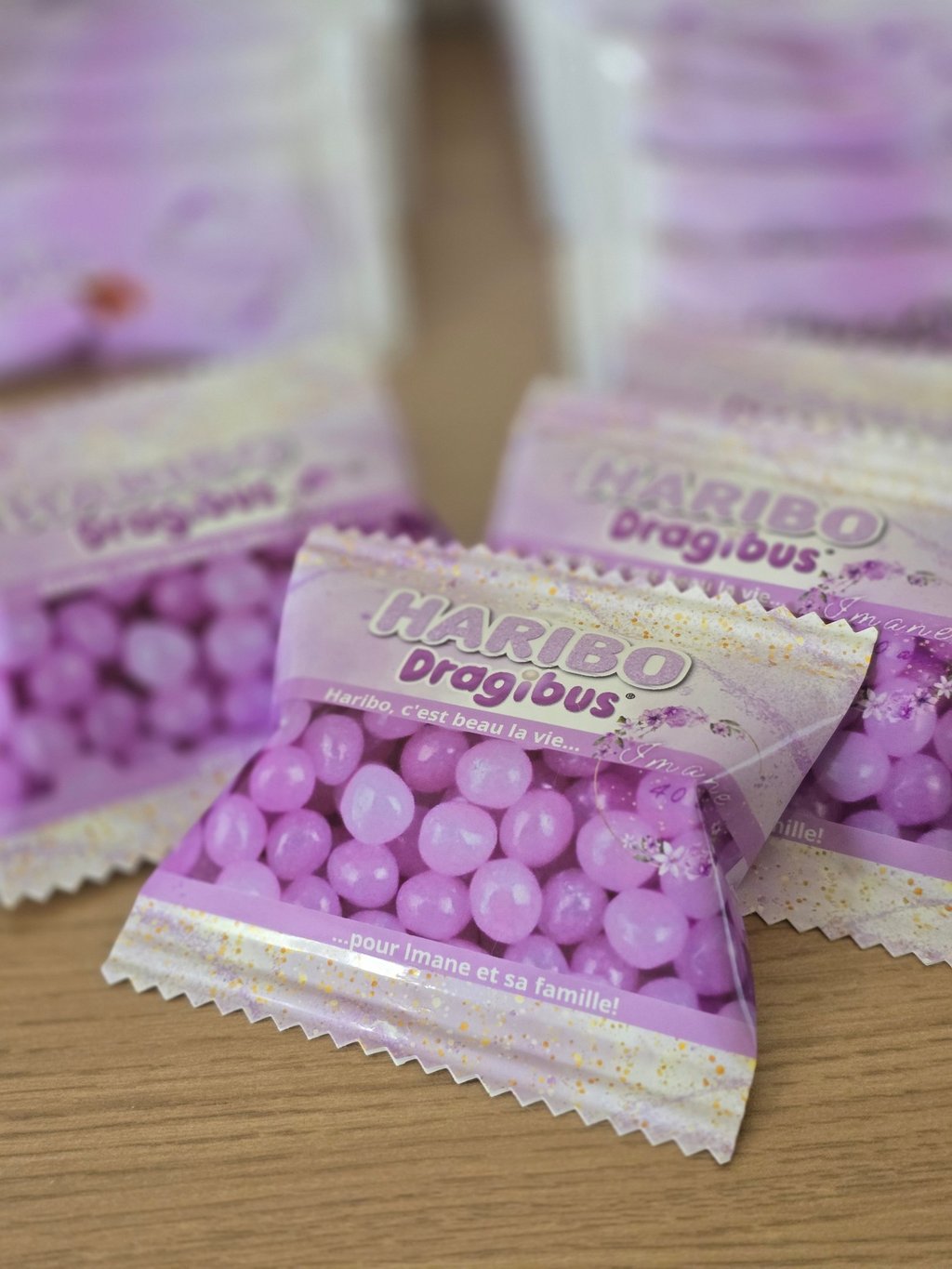 Quoi de mieux qu'un joli candy bar agrémenté de gourmandises personnalisés (kinder bueno, sachet de bonbons, boites à popcorn, box enfants, etc.)