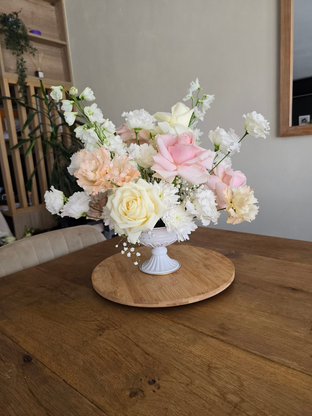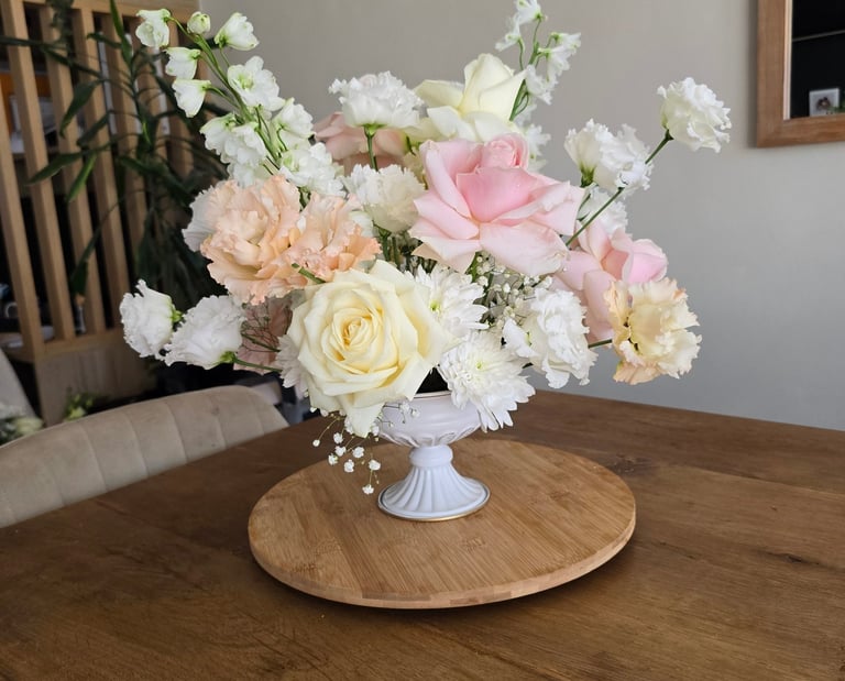 Une jolie composition pour décorer votre photocall ou vos tables avec de belles fleurs fraiches délicatement choisies