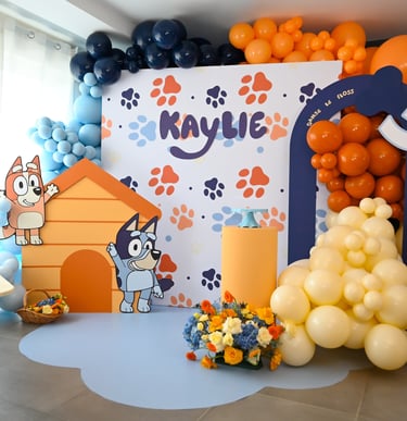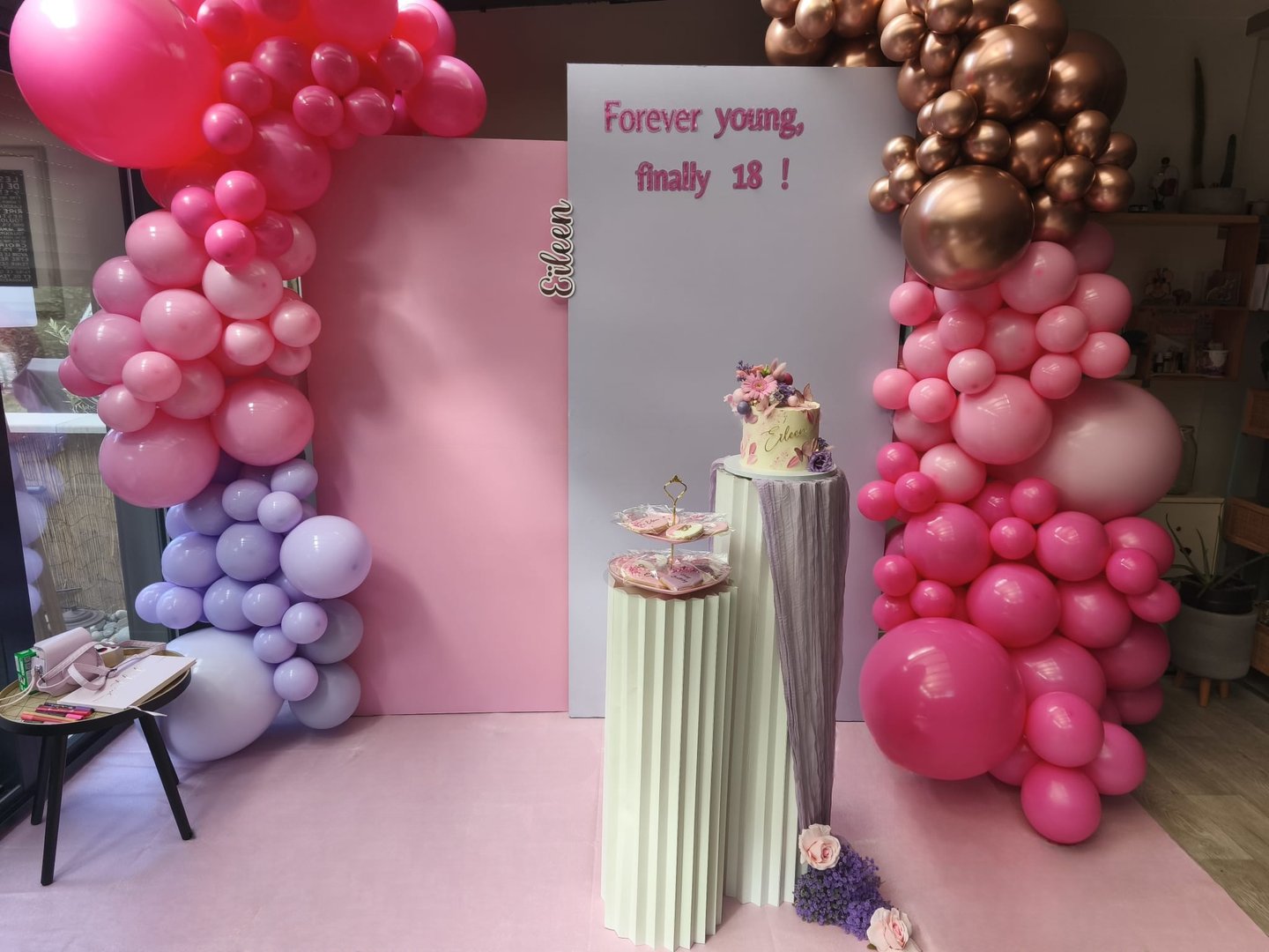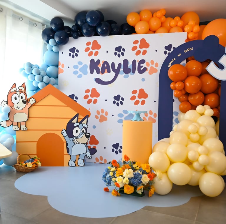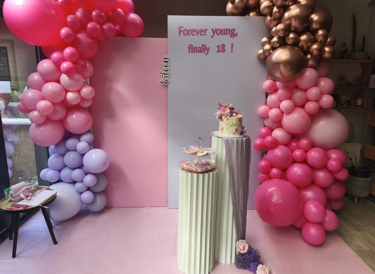 Ambiance festive avec décorations personnalisées pour anniversaires.